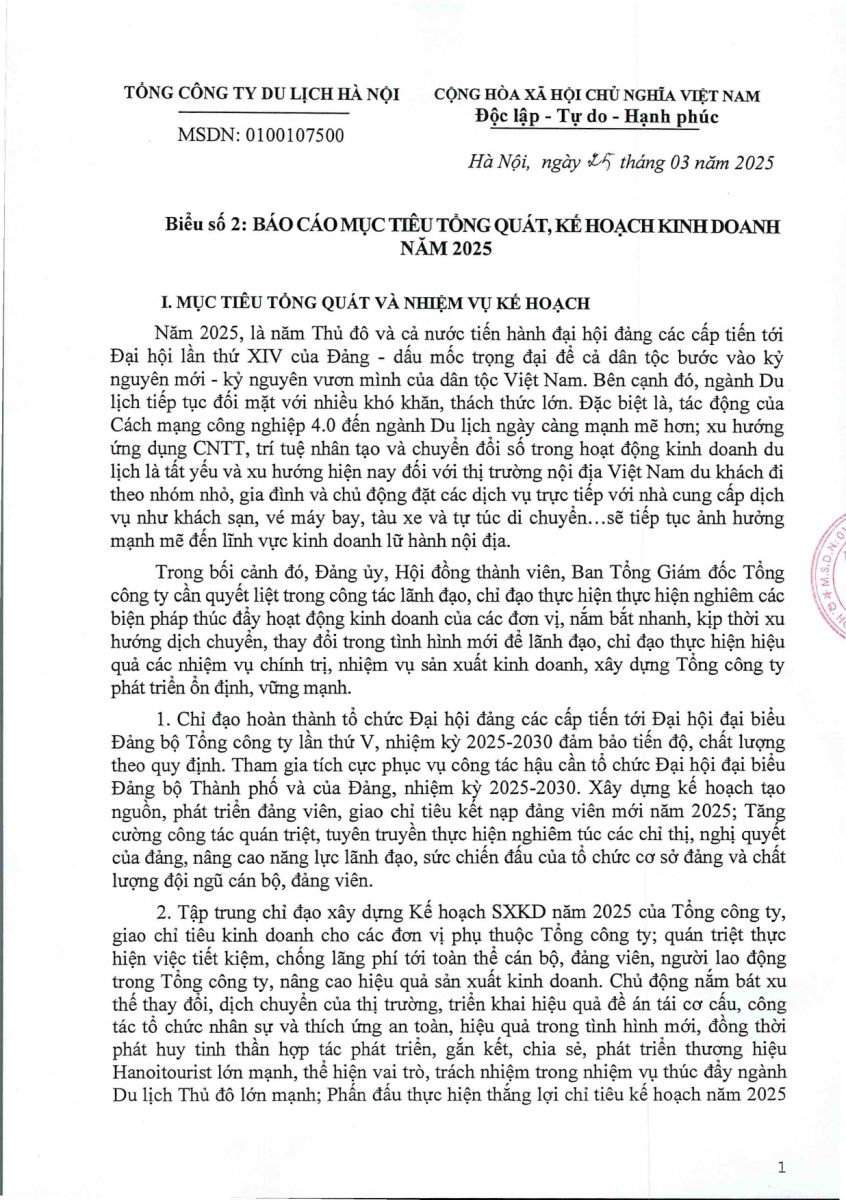 Báo cáo mục tiêu tổng quát, kế hoạch kinh doanh năm 2025