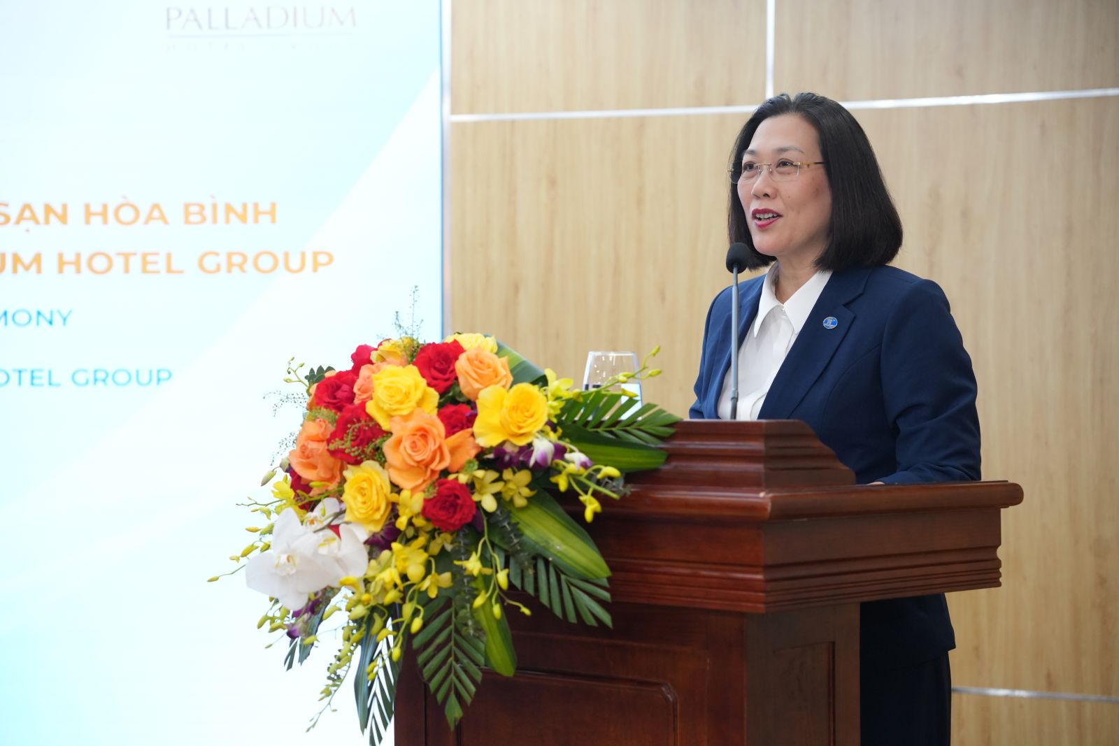 Bà Nguyễn Thị Vân, Tổng giám đốc Tổng công ty Du lịch Hà Nội phát biểu tại Hội nghị: “Sau một thế kỷ gìn giữ vẹn nguyên giáng xưa, nét cũ, đã đến lúc chúng ta cùng nhau đánh thức một viên ngọc quý khác, đó chính là Khách sạn Hòa Bình. Lễ ký kết ngày hôm nay không chỉ là một dấu mốc quan trọng cho dự án, mà còn là khởi đầu để chúng ta viết tiếp những chương mới, tái định vị một giá trị huy hoàng cho 100 năm tiếp theo của khách sạn”.