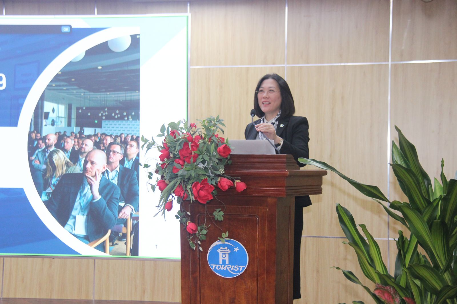 Tổng Giám đốc Nguyễn Thị Vân tặng hoa giảng viên Nguyễn Thị Thủy tại Buổi khai mạc