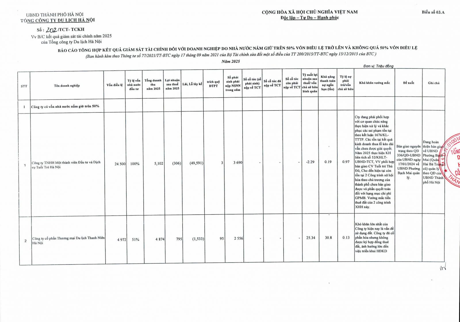 Hanoitourist công bố báo cáo kết quả giám sát tài chính năm 2025