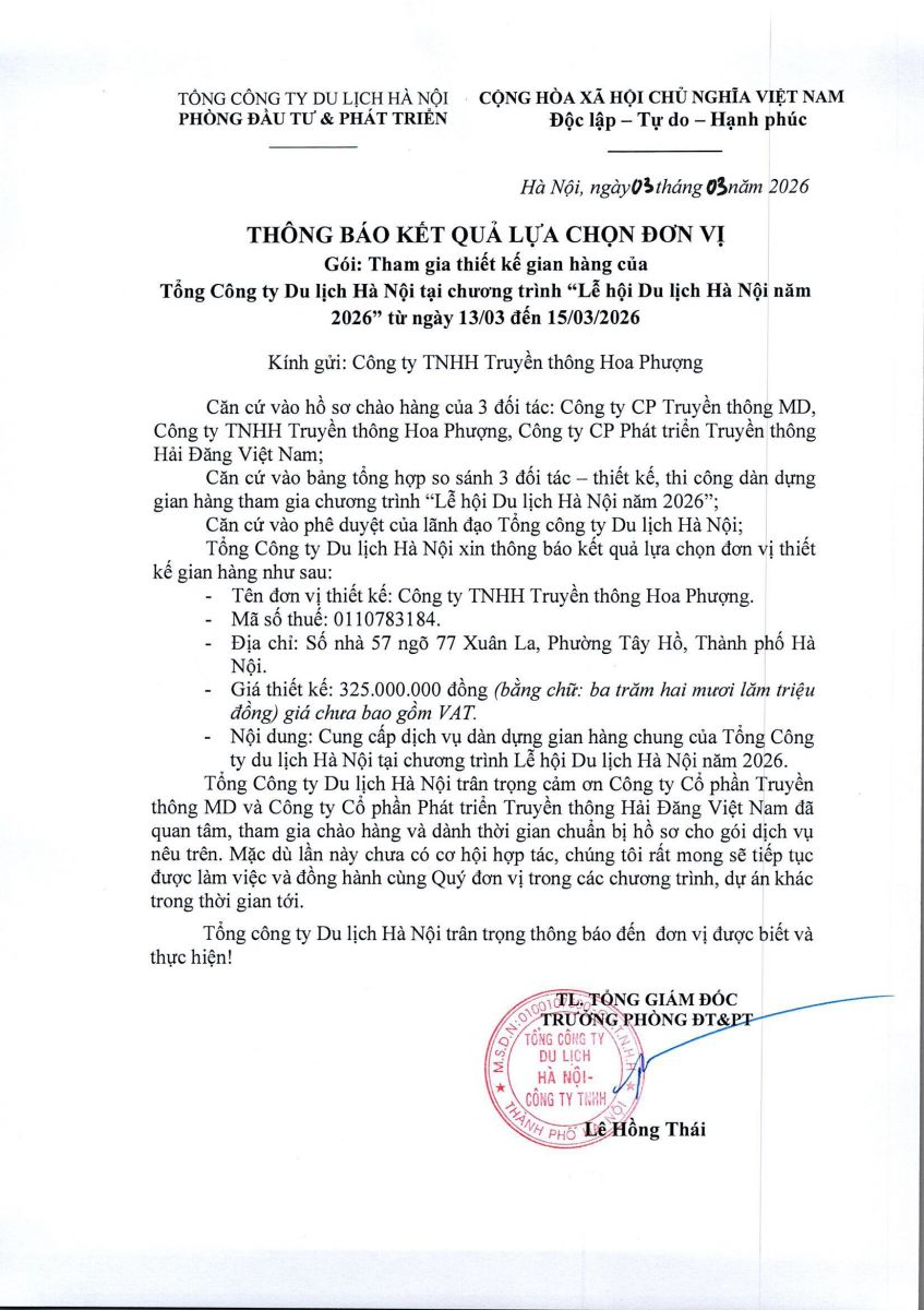 (Niêm yết công bố thông tin bất thường) Hanoitourist tổ chức Hội nghị công bố Quyết định bổ nhiệm chức danh Kế toán trưởng Tổng công ty
