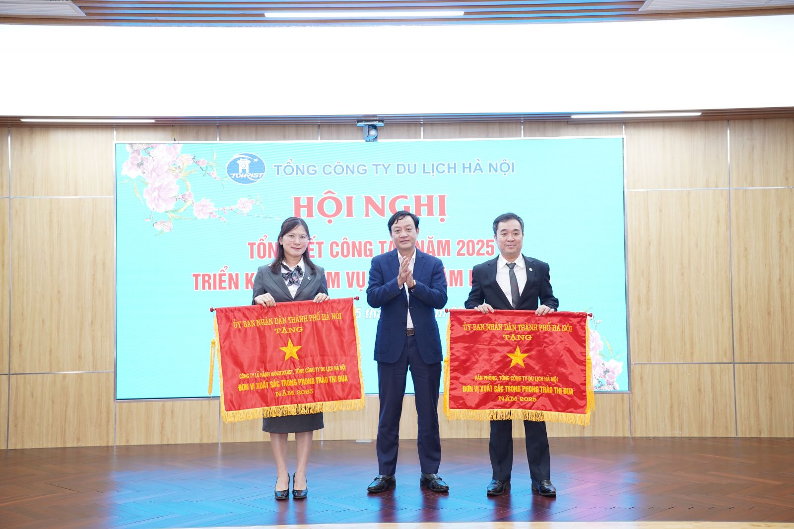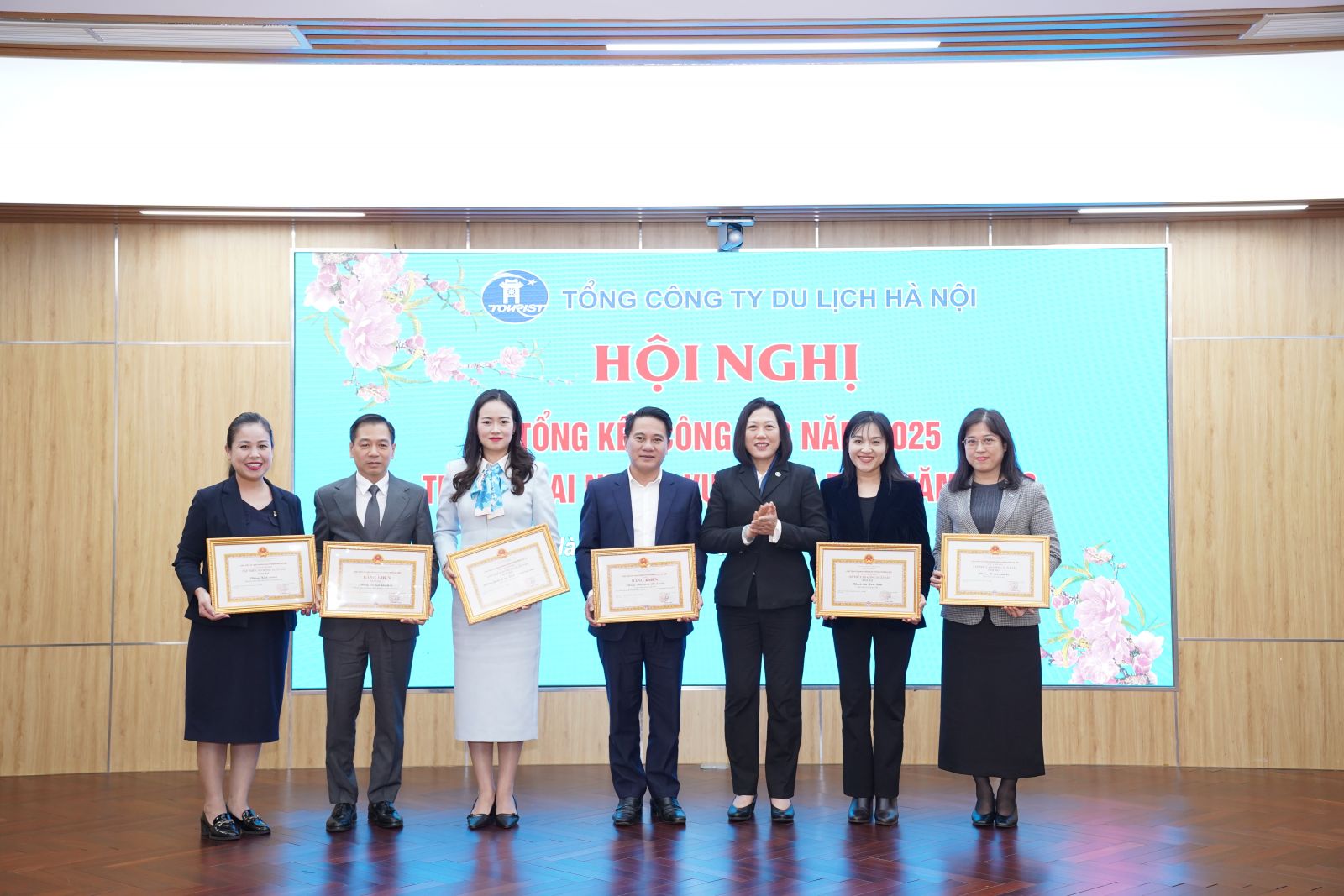 Tại Hội nghị tổng kết, Tổng công ty Du lịch Hà Nội vinh dự ghi nhận nhiều kết quả thi đua, khen thưởng quan trọng trong năm 2025. Theo các Quyết định của Chủ tịch UBND Thành phố Hà Nội, Công ty Lữ hành Hanoitourist và Văn phòng Tổng Công ty Du lịch Hà Nội thuộc Tổng công ty đã được tặng danh hiệu “Cờ Đơn vị xuất sắc phong trào thi đua” do có thành tích tiêu biểu trong phong trào thi đua thực hiện nhiệm vụ công tác năm 2025. Bên cạnh đó, phòng Đầu tư và Phát triển Tổng công ty và 09 cá nhân thuộc Tổng công ty được Chủ tịch UBND Thành phố tặng Bằng khen vì đã có thành tích xuất sắc trong phong trào thi đua thực hiện nhiệm vụ công tác giai đoạn từ năm 2024 đến năm 2025. 05 tập thể trực thuộc Tổng Công ty Du lịch Hà Nội được trao tặng danh hiệu “Tập thể lao động xuất sắc”, gồm: Phòng Tổ chức cán bộ, Tổng Công ty Du lịch Hà Nội; Phòng Quản lý và Kinh doanh tòa nhà, Tổng Công ty Du lịch Hà Nội; Khách sạn Hòa Bình, Tổng Công ty Du lịch Hà Nội; Phòng Kinh doanh, Khách sạn Hòa Bình, Tổng Công ty Du lịch Hà Nội; Phòng Du lịch khách lẻ, Công ty Lữ hành Hanoitourist, Tổng Công ty Du lịch Hà Nội. Các kết quả trên tiếp tục khẳng định tinh thần trách nhiệm, nỗ lực đổi mới và hiệu quả trong công tác quản lý, điều hành và thi đua lao động của Tổng công ty và các đơn vị trực thuộc.